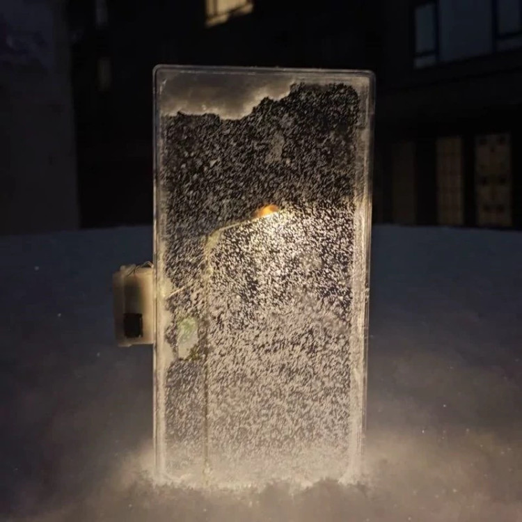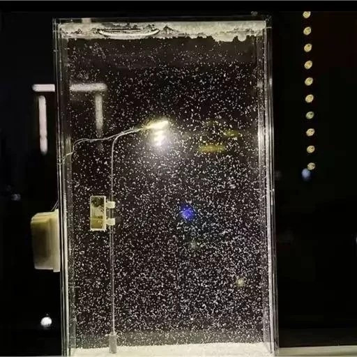 حرکت برف های مصنوعی که به آرامی درون چراغ حرکت میکنند