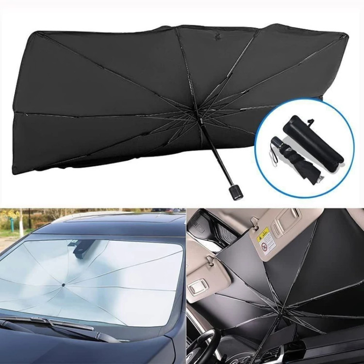 🔸آفتاب گیر خودرو مدل چتری ابعاد 135*75 آفتاب گیر چتری ماشین با طراحی تاشو پوشش کامل شیشه جلو و قابلیت ضد UV کاهش گرما و محافظت از فضای داخلی خودرو مناسب برای انواع خودروهای سواری و شاسیبلند